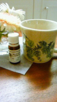 ぬるめのお湯を入れたマグカップに、ティートリーオイルを1滴