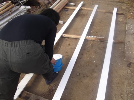 さてさて、こんな天気のときは白柵のペンキ塗りです。