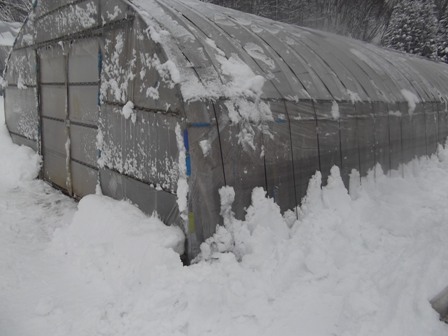 ハーブ園のお庭に、3つほどビニールハウスがあるのですが、雪が屋根につもり、落ちる・・・