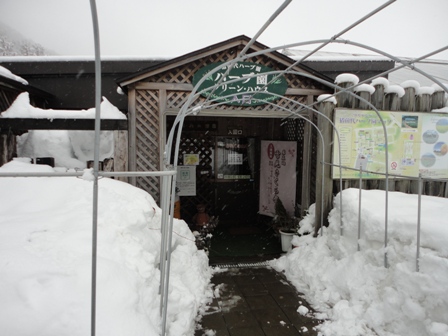 少し標高の高い場所にあるハーブ園は、少し積もりました。