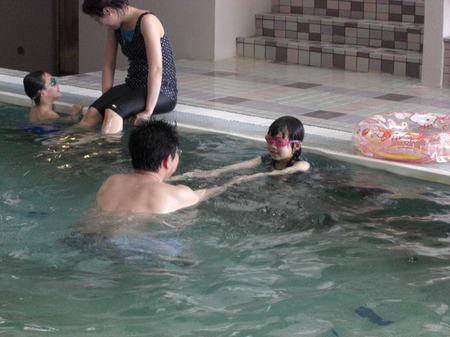 プールの中ではしゃげば、最高のスキンシップがはかれますよ