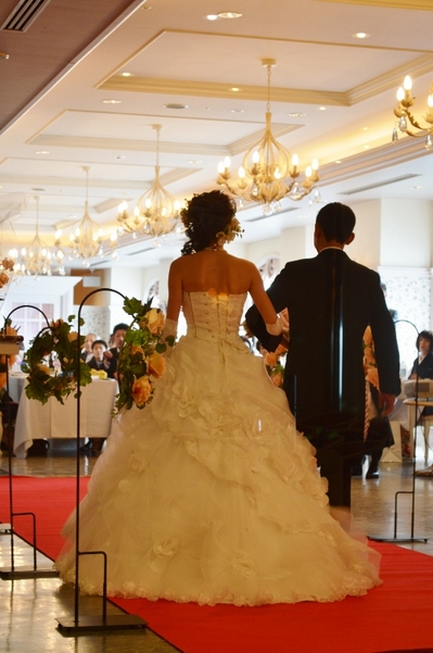 真っ赤なバージンロードを、レストラン会場に敷かせていただきました