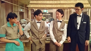 インターンシップ期間中、食事会場での実務やプールでの実務等