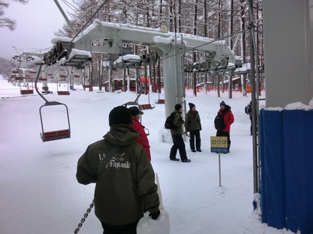 そして、第1リフト降り場、第2リフトへ向かうリフトマン