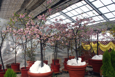 猪苗代ハーブ園では「雪見さくら祭り」が始まりました。(~3/18まで 入園無料)