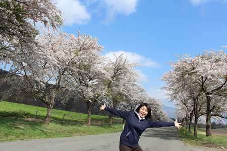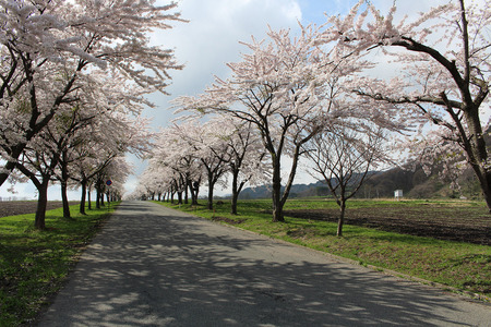 猪苗代町営牧場の1km以上に渡る桜並木も満開になりました。