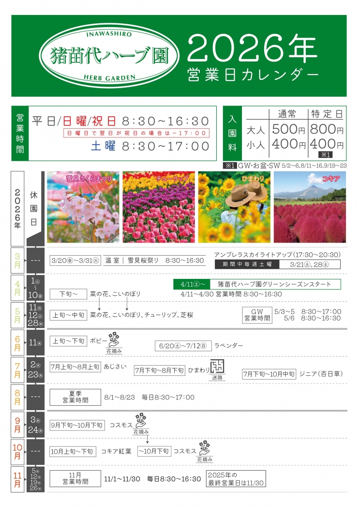 海抜600mの磐梯高原リステルパーク内100,000㎡のハーブガーデン。