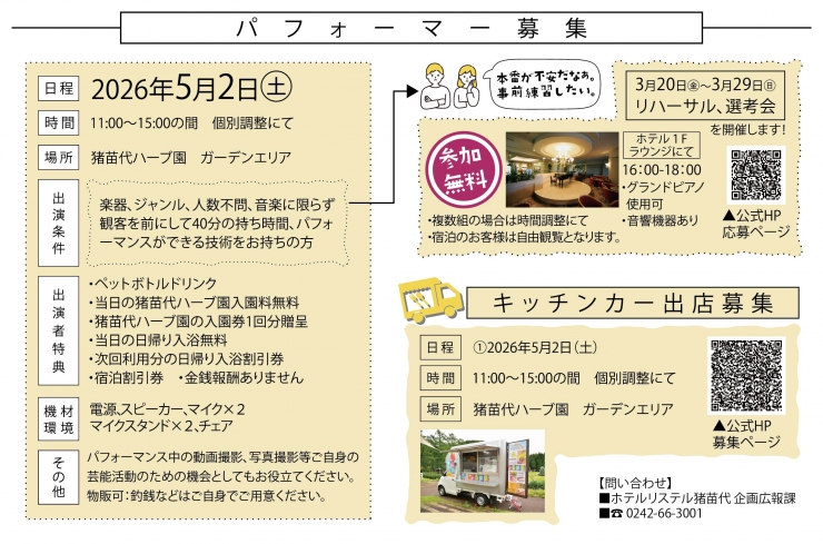2026年5月2日(土) 猪苗代ハーブ園でパフォーマンスをしてみませんか?