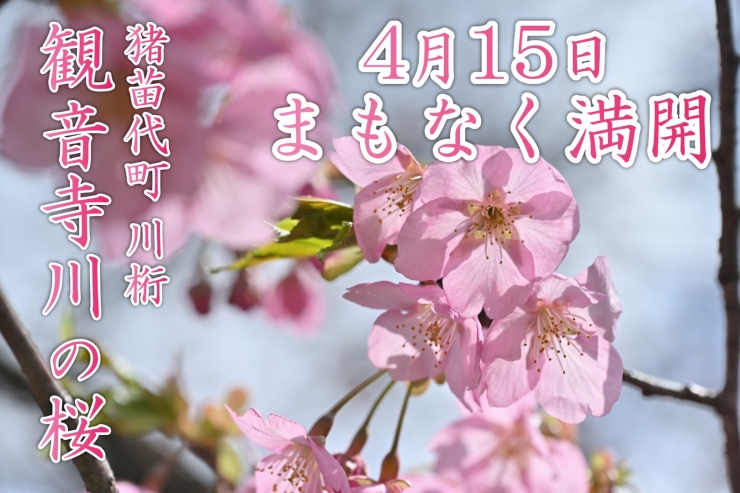 観音寺川の桜まつりは4月18日~29日で予定されています。仮設トイレ、駐車場誘導、屋台の出店は4月14日現在では行われていませんので桜の開花状況をご覧にいらっしゃる皆様はご注意ください。