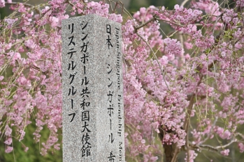 お気づきですか?桜の木々の隣には必ず石碑が建てられており、さまざまな国の友好親善の記念で植樹されたものであることがわかります。