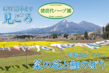 菜の花が見頃です 磐梯山をバックに鯉のぼりとの共演 GW前半まで 猪苗代ハーブ園