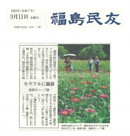 『カラフルに競演』猪苗代ハーブ園のジニア 2025年9月11日 福島民友
