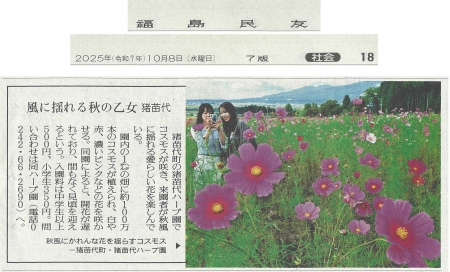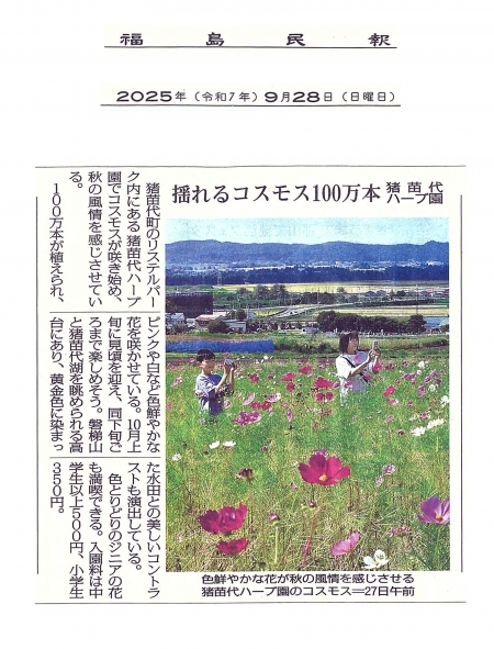 「揺れるコスモス100万本 猪苗代ハーブ園」2025年9月28日掲載 福島民報