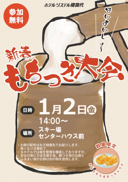 ★当ホテルでは衛生管理を徹底しておりますが、安全対策に万全を期す為、餅つき用の餅とお客様にご提供する餅は別のものをご用意いたします。予めご了承ください。