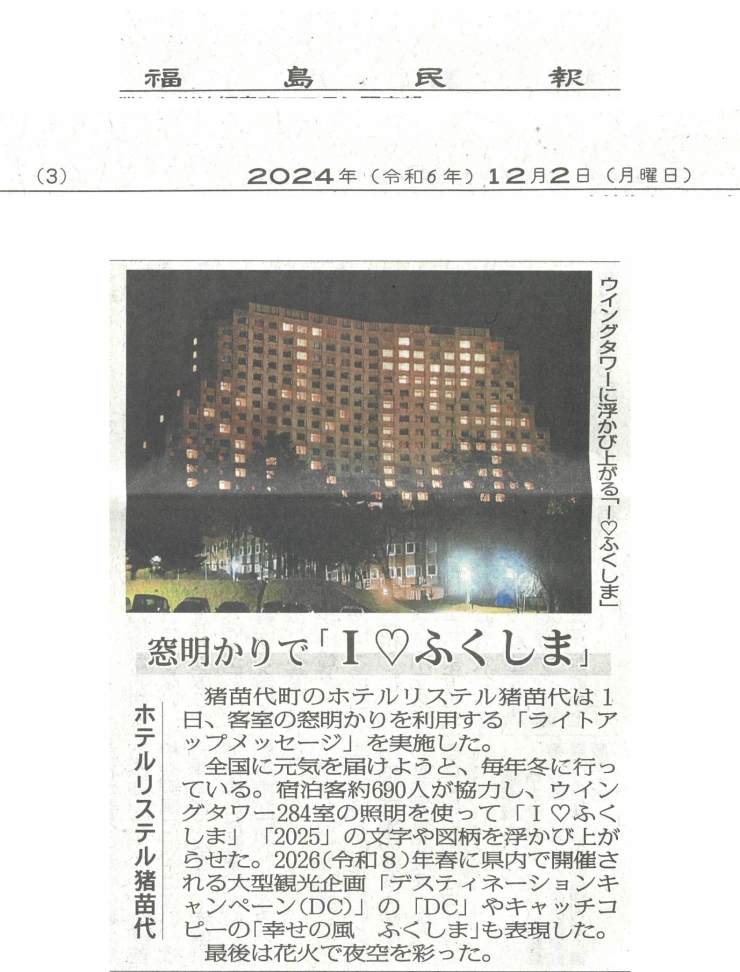 窓明かりで「I♡ふくしま」 2024年12月2日 福島民報