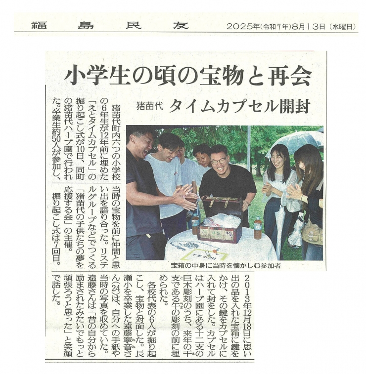 『小学生の頃の宝物と再会 タイムカプセル開封』2025年8月13日 福島民友