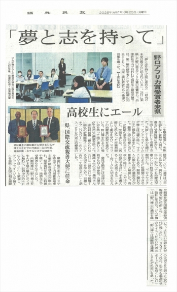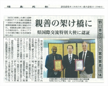野口英世アフリカ賞受賞者認証式 2025年8月25日 福島民報・福島民友
