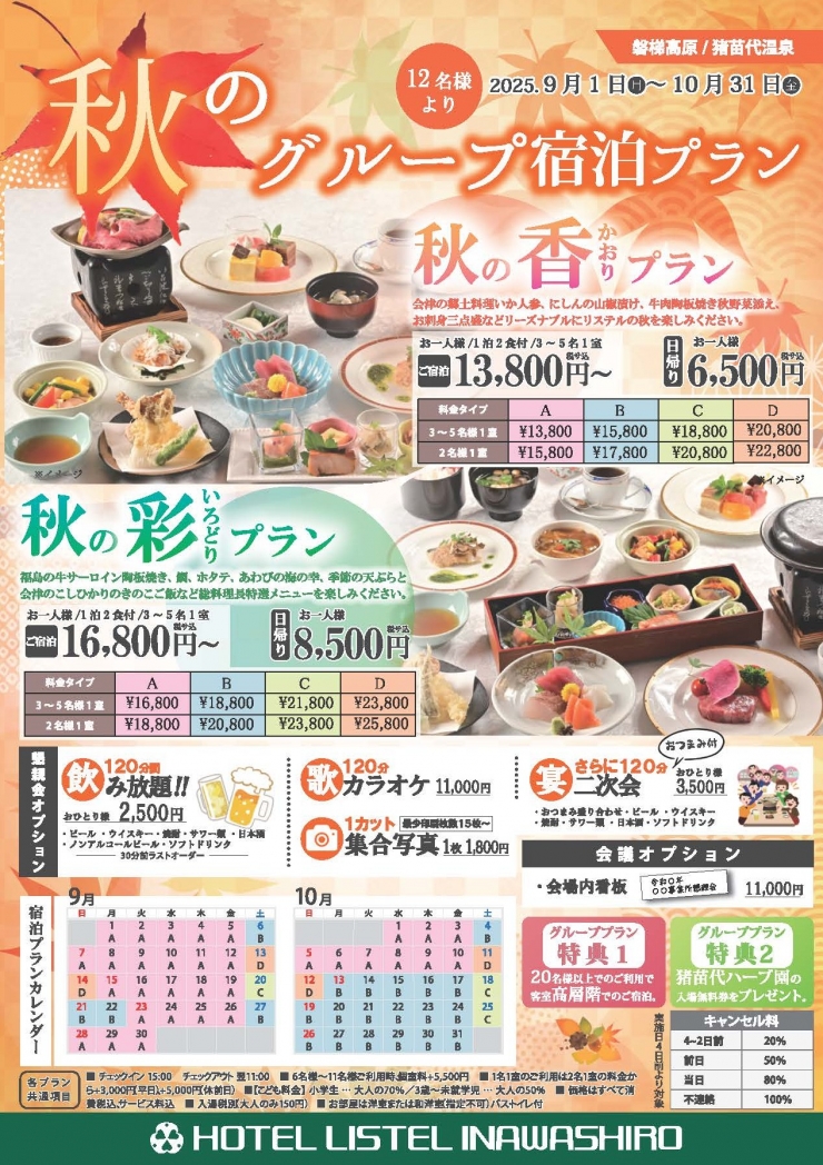【ご予約受付中!】秋のグループ宴会ご宿泊プラン