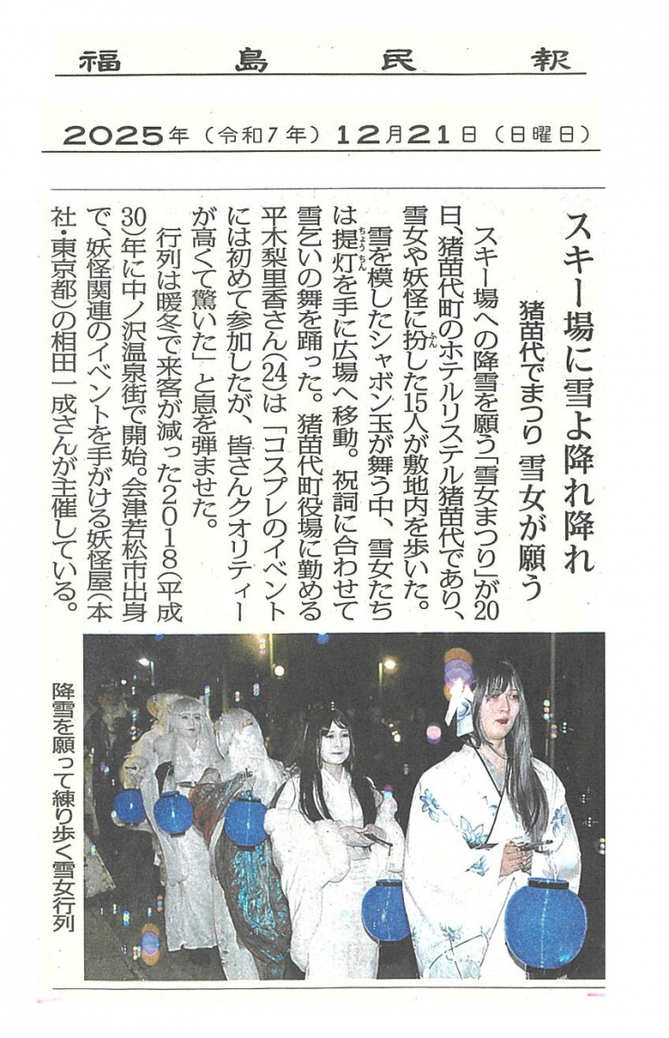 雪女まつり_リステル猪苗代_福島民報