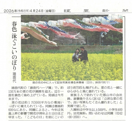 『春色 泳ぐこいのぼり 猪苗代』 2026年4月24日 読売新聞福島版