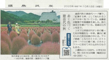 『赤く色づく猪苗代の秋』 2025年10月15日 福島民友