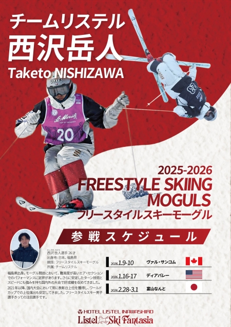 チームリステル 西沢岳人選手 フリースタイルスキーモーグル 2025-26シーズン 参戦情報&結果