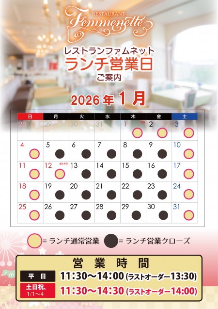 【ランチ営業日のお知らせ】ホテルレストラン ファムネット