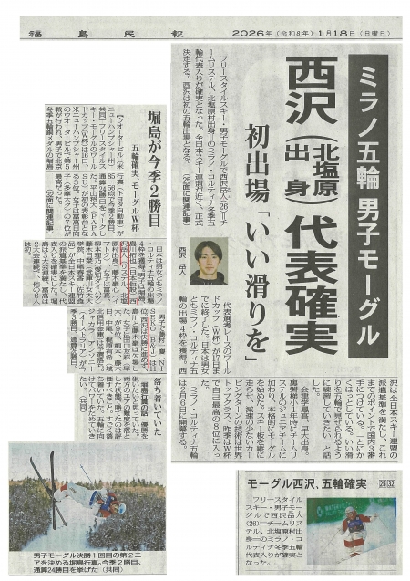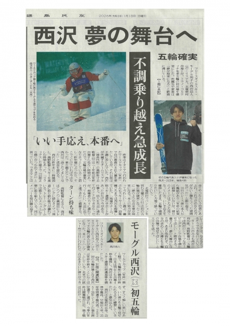 『西沢 夢の舞台へ 五輪確実』 2026年1月18日 福島民友