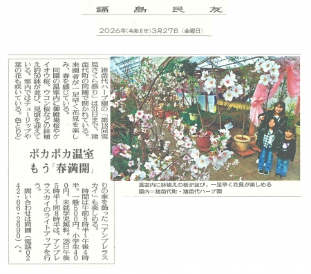花見一足早く 猪苗代ハーブ園 福島民友・福島民報