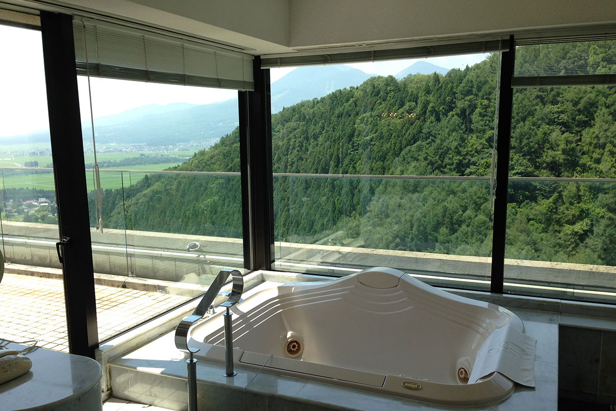 객실 및 노천탕에서는 이나와시로 호수를 전망할 수 있으며,