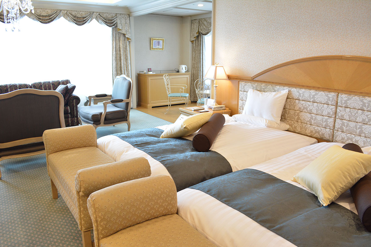 전 객실이 이나와시로 호수 방향으로 반다이 고원 경치를 즐기실 수 있습니다.