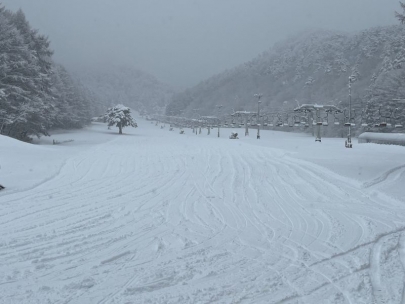 一昨日の夜から降り始めた雪で今シーズン初めてゲレンデ一面真っ白になりました。20㎝ほど積もってます。