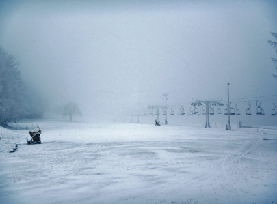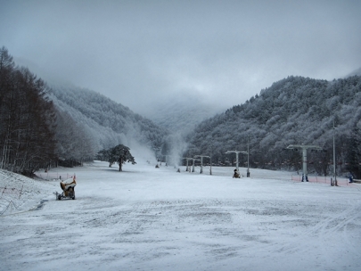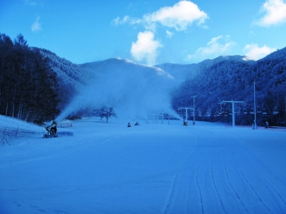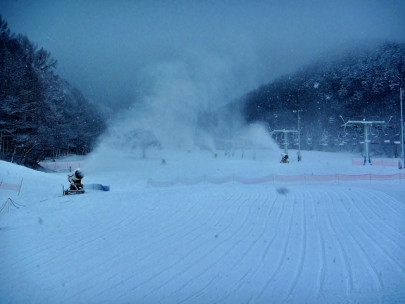 昨夜は人工降雪の条件としては少し気温が高めで稼働状態はいま一つ。