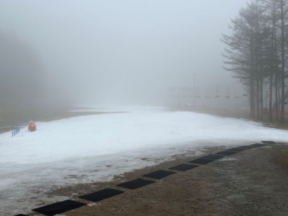 1月4日 今朝は気温1.5℃、濃いガスがかかっていて視界が数十メートルといったところ。かすかに霧雨が降っています。融雪はどんどん進んでいきますので、昨日は15:30でリフトを終了して雪出し作業を行いましたが、まだまだ足りていません。今朝も雪出し作業をして営業準備を進めます。