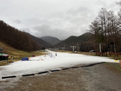 1月5日 昨夜は氷点下になったものの冷え込みは今一つ。人工降雪機でもっともっと積雪を確保したかったのですがまだまだ足りません。夜間に人力の雪出しも行いましたが、運ぶ雪も尽きてきたため、雪を寄せて狭い滑走ルートを作るのがやっとでした。滑走にはかなり注意が必要です。今日は終日晴れの予報でゲレンデの融雪が進みそうです。それに加え明日はあいにくの雨の予報ですのでゲレンデを維持するのは非常に難しいと思われます。人工降雪で出来た雪をかき集め最善を尽くし滑走いただけるようにしたいと思っております。