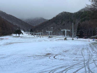 12月初日は雪景色のゲレンデとなりました。
